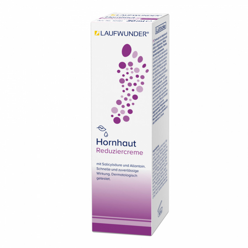 Laufwunder Hornhaut krém sa veľmi účinne stará o zrohovatenú pokožku nôh. Pokožku zmäkčuje, zvláčňuje a redukuje zhrubnutú a zrohovatenú pokožku, ktorá je často neestetická a boľavá. Obsahuje kyselinu salicylovú, ktorá účinne rozpúšťa a zmäkčuje rohovinu. Alantoín hydratuje, regeneruje a chráni. Tiež obsahuje výťažok z vŕbovej kôry, ktorý má protizápalové účinky, podporuje odstraňovanie odumretých buniek a zároveň dezinfikuje.