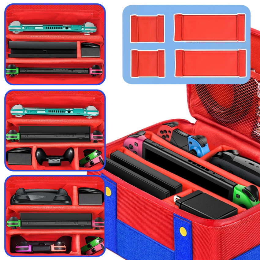 Puzdro pojme všetko potrebné príslušenstvo užitočné pre hráča spolu s konzolou. Špeciálne priehradky vám umožňujú uložiť podložky Joy-Con, slúchadlá a napájací kábel. Okrem toho sa dajú usporiadať podľa vašich preferencií. Vďaka suchému zipsu na bokoch usporiadate priehradky tak, aby sa do nich zmestilo všetko príslušenstvo. Vďaka nášmu puzdru si konzolu môžete vziať všade – do školy, na výlet, do kempu alebo na dlhú cestu! Kufrík je vyrobený z najkvalitnejších materiálov. Pre ešte väčšie pohodlie je taška vyrobená z vodoodpudivého materiálu! Skvelá funkcia pre cestovateľov, ktorí si berú konzolu na cesty! Vďaka perfektnej kvalite materiálov použitých pri výrobe kryt zároveň chráni zariadenie pred prachom a inými poveternostnými vplyvmi.