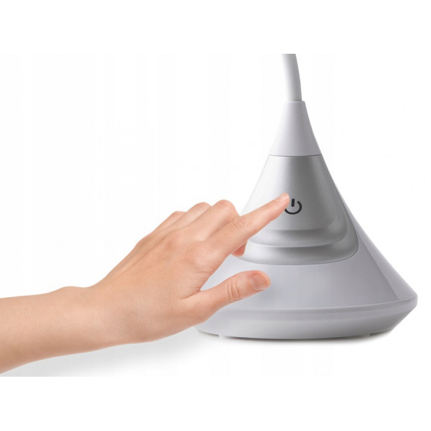 LED kancelárska lampa s dotykovým ovládacím panelom. Mäkké svetlo rovnomerne osvetlí pracovisko (stôl, kniha, klávesnica počítača atď.). Svietidlo je možné nastaviť v ľubovoľnom uhle. Zariadenie je napájané zo zabudovanej batérie, ktorá vám umožní vziať si ho so sebou na výlet.