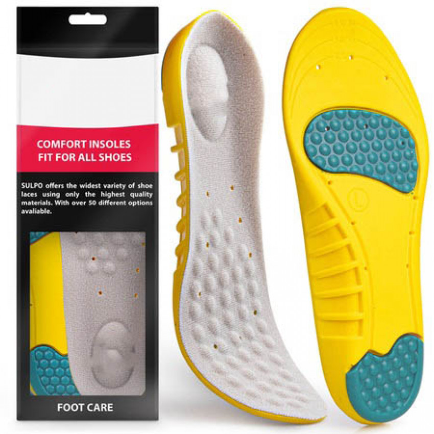 Vyrobené z mäkkej a pružnej peny, tieto vložky do topánok priliehajú dokonale k tvaru chodidla. Najviac namáhané časti chodidla sú opatrené dodatočným odpružením, čo zabezpečuje pohodlie pri chôdzi.