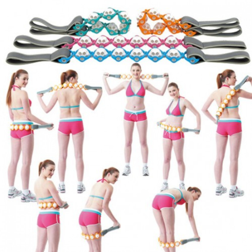 Doprajte si pohodlnú masáž chrbtových svalov, ramien, šije, nôh a zadku. Tento masážny pás disponuje dvomi pevnými textilnými úchytmi na každej strane a šiestimi masážnymi guličkami umiestnenými v pevnej plastovej konštrukcii.