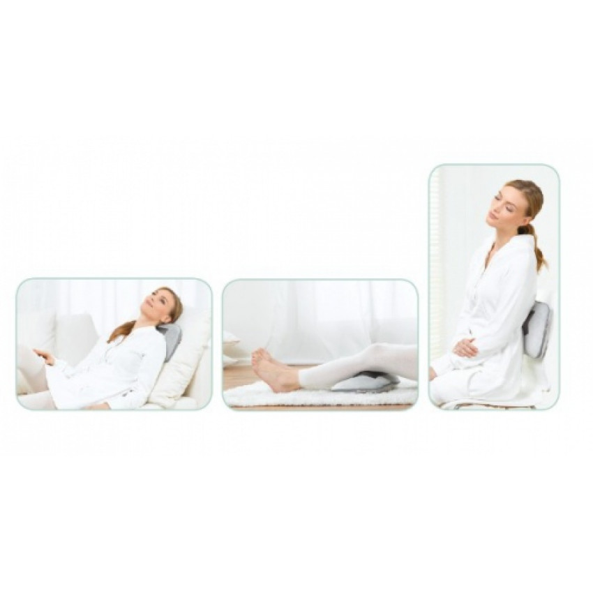 Masážny vankúš je všestranný – môžete ho použiť na masáž chrbta, krku, ramien, rúk, brucha, nôh či sedacích svalov. Intenzitu masáže si regulujete jednoducho – ak sa pevnejšie pritlačíte, dosiahnete hlbšiu masáž, pri jemnom dotyku je masáž relaxačná. Pre optimálny efekt odporúčame masáž v trvaní maximálne 30 minút.