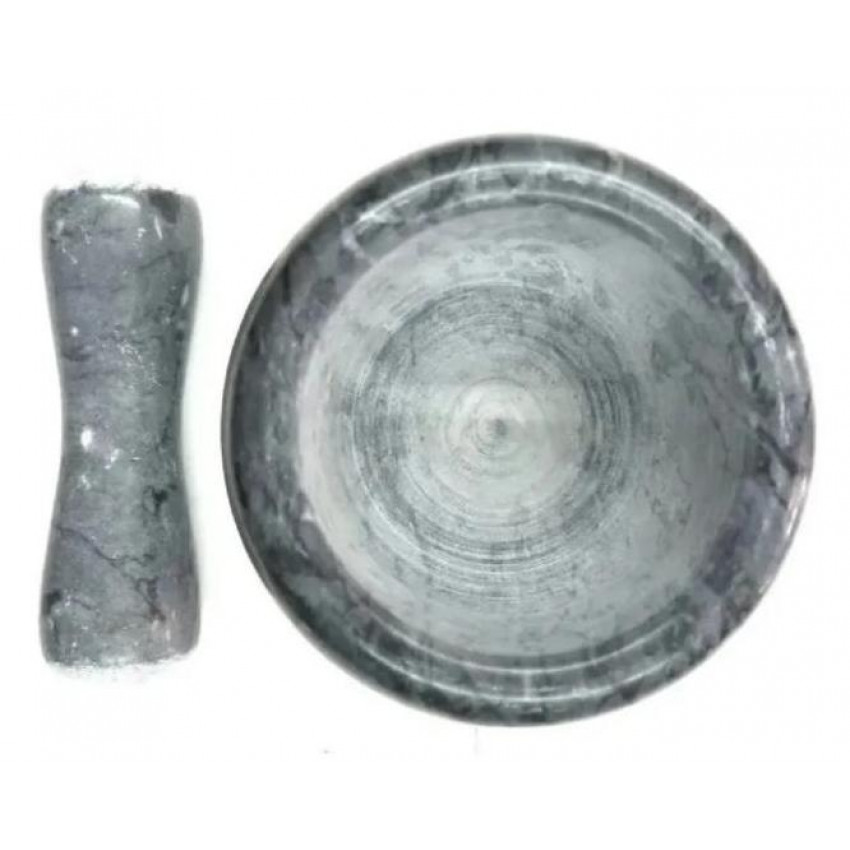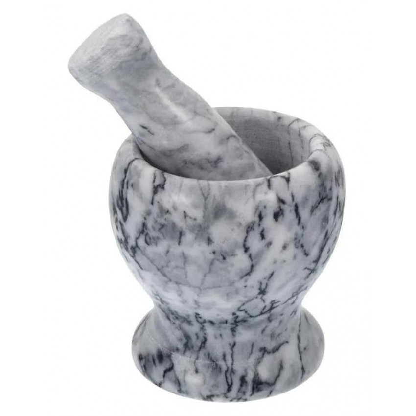 Tento klasický mramorový mažiar slúži na klasické drvenie korenia alebo byliniek. S touto technológiou drvenia sa často stretávame pri príprave mediteránskej alebo orientálnej stravy. Mažiar je vyrobený z mramoru, je masívny a pomerne dosť ťažký. Keď sa nepoužíva, je to aj pekný dekoračný prvok interiéru.