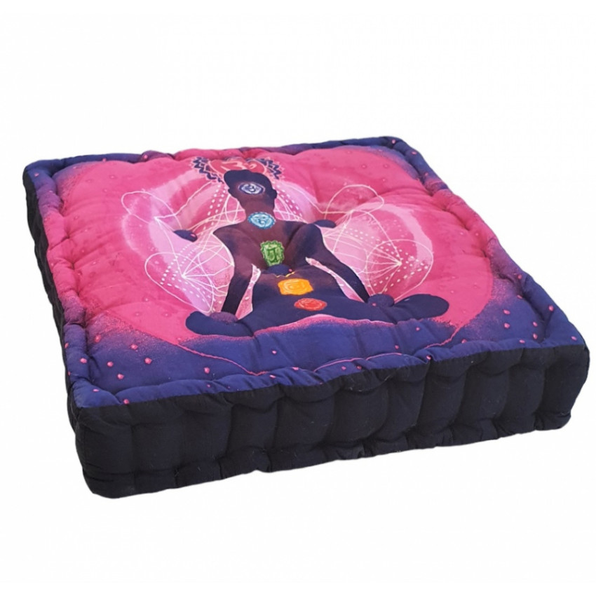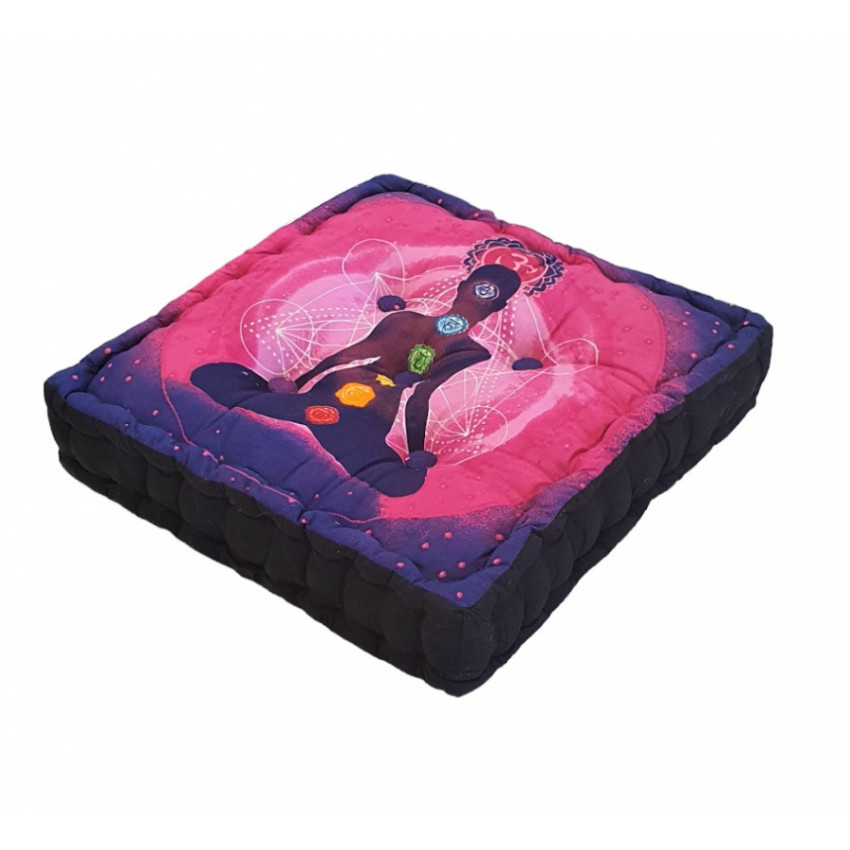 Krásna farebná schéma vnesie do vášho interiéru veselú atmosféru. Podsedák je zakončený prídavným úchytom na boku. Tento meditačný podsedák má krásnu farebnú potlač zobrazujúcu jogína a čakry. Preto je vhodný najmä pre ľudí, ktorí milujú meditáciu a relaxáciu. Vnesie do vašej izby útulnú atmosféru.