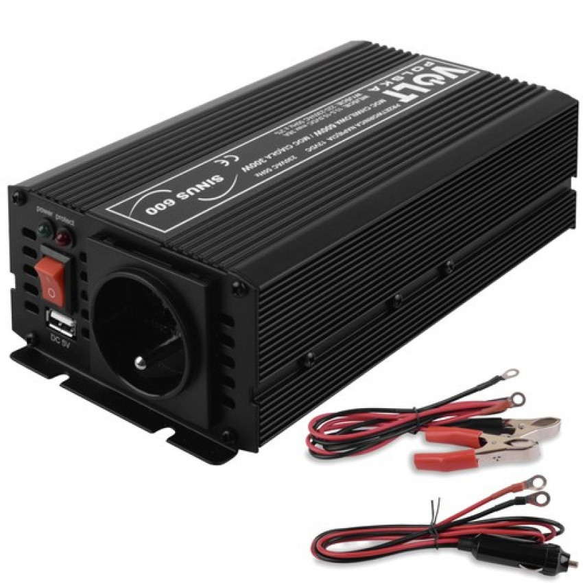 Elektronický menič SINUS 600 12V slúži na napájanie elektrických zariadení vyžadujúcich striedavé napätie 230V z batérií a autoinštalácií jednosmerným napätím 12V. Je ideálny pre vozidlá a miesta, kde nie je možnosť priameho pripojenia k elektrickej sieti.