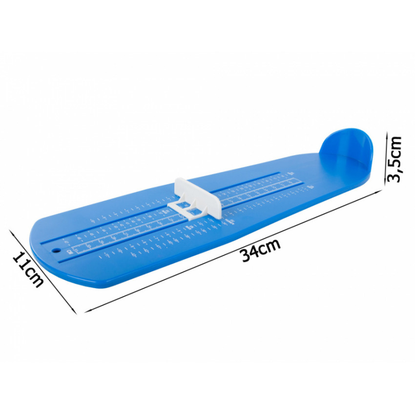 Presné meranie chodidla uľahčuje výber správnej veľkosti obuvi online. Meradlo s EU, UK a cm stupnicami je vhodné pre dospelých aj deti. Vyrobené z kvalitného plastu, rozsah 15–37 cm, farba modrá.