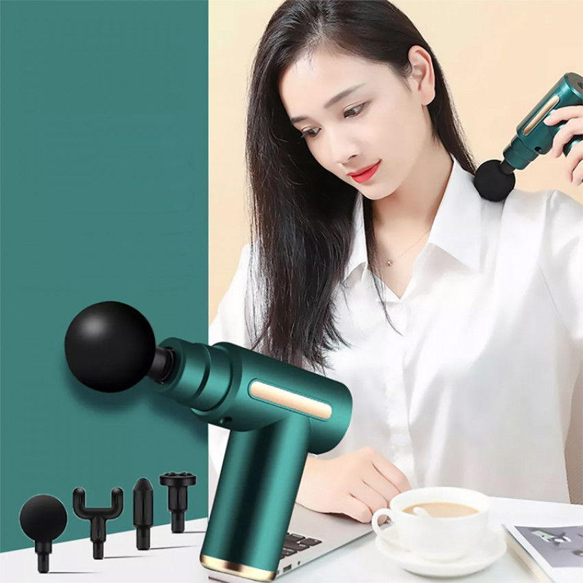 Mini masážna pištoľ pro so 4 nástavcami, zelená