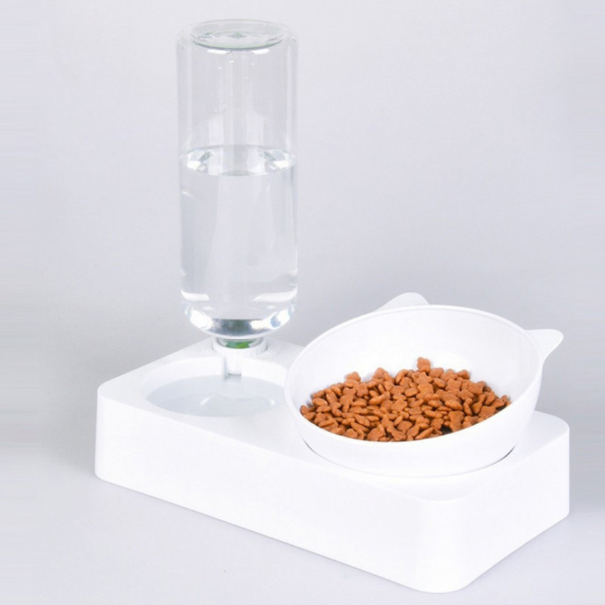Miska na krmivo s dávkovačom vody pre mačku, biela