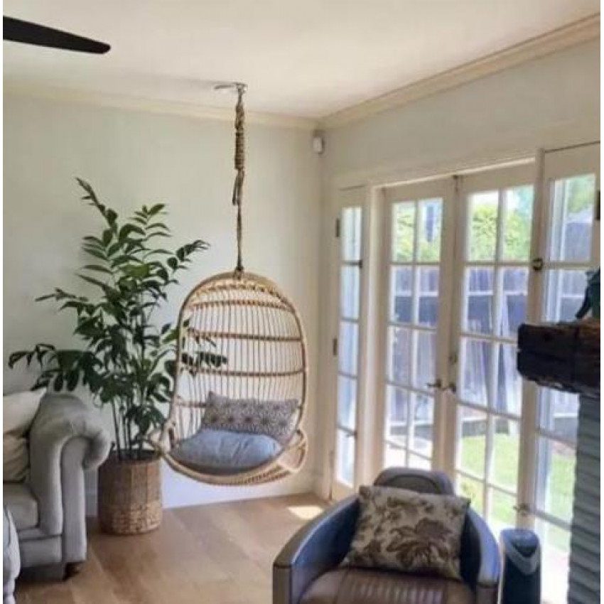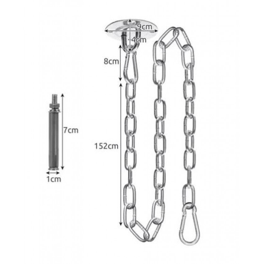 Súprava obsahuje karabíny, skrutky, pevnú a dlhú reťaz a stropný držiak. Je veľmi odolná. Jej maximálna nosnosť je až 250 kg. Ide o praktické a bezpečné riešenie, ktoré umožňuje jednoduché zavesenie týchto obľúbených sedacích prvkov. Môžete si ho nainštalovať jednoducho, svojpomocne, pomocou základných nástrojov dostupných u vás doma. Stačí vyvŕtať otvory a zaskrutkovať do nich kotvy, pripevniť a utiahnuť.
