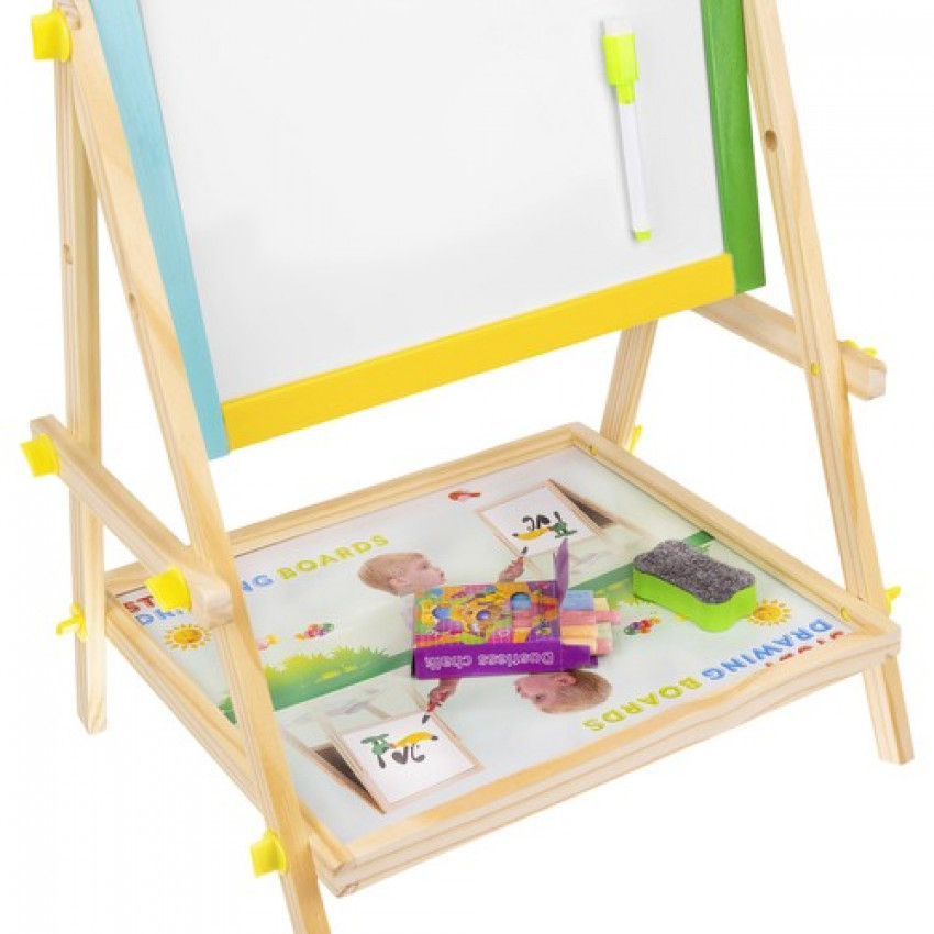 Obojstranná tabuľa s príslušenstvom je skvelým darčekom, ktorý poteší každé dieťa. Zabalená v farebnom obale, pripravená priniesť radosť už pri rozbaľovaní.