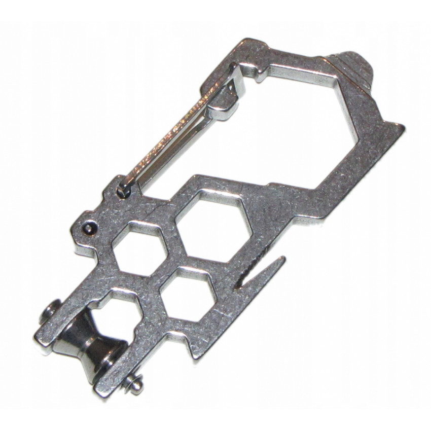 Karabína Multitool je nástroj na každodenné nosenie. Karabína je vyrobená z kvalitnej nehrdzavejúcej ocele, poskytuje plochý skrutkovač a otvárač na konzervy, krúžkové kľúče - viď fotografie. Integrovaný systém karabínových kladiek špeciálne navrhnutý pre turistiku.
