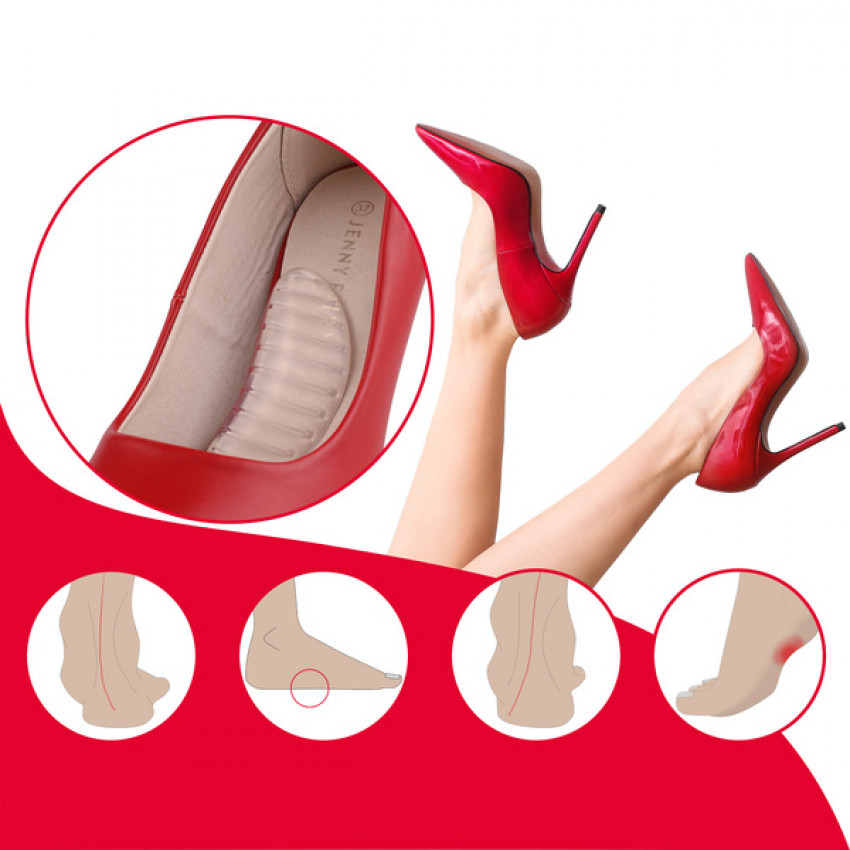 - Zmenšenie veľkosti topánok: Gélové podpätky efektívne vyplňujú prebytočný priestor vo vnútri topánky, zabraňujú vykĺznutiu päty a eliminujú potrebu nepretržitého upravovania topánok.