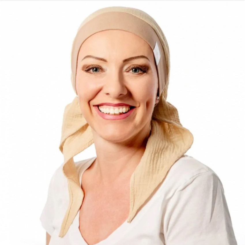 Obvod šatky sme špeciálne upravili pre potreby dám bez vlasov alebo s riedkymi vlasmi.