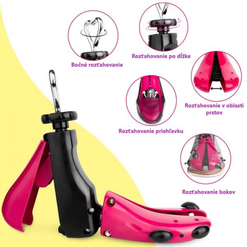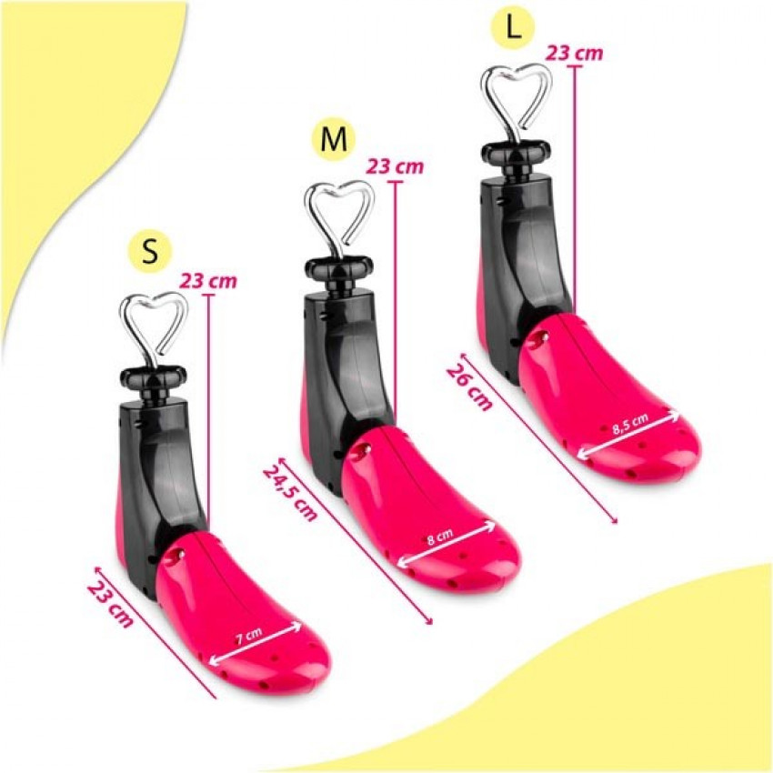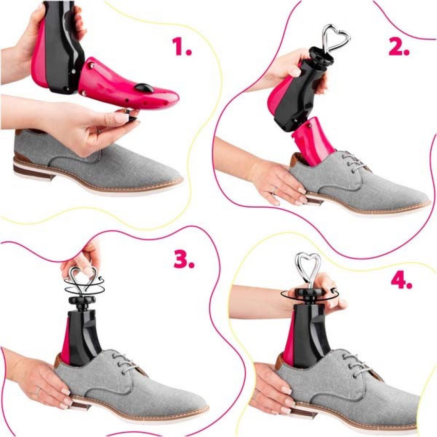 Plastové rozťahováky na natiahnutie akéhokoľvek typu obuvi. Uľahčujú starostlivosť a čistenie obuvi. Doprajte svojim topánkam dokonalé prispôsobenie a zároveň predĺžte ich odolnosť a estetický vzhľad. Používanie rozťahovákov pomáha udržiavať topánky v perfektnom stave. Zabezpečujú zachovanie pôvodného tvaru obuvi a vyhladzujú záhyby na obuvi. Predtým nepohodlné a úzke topánky sa môžu stať vašimi obľúbenými. Len na nich treba trochu popracovať.
