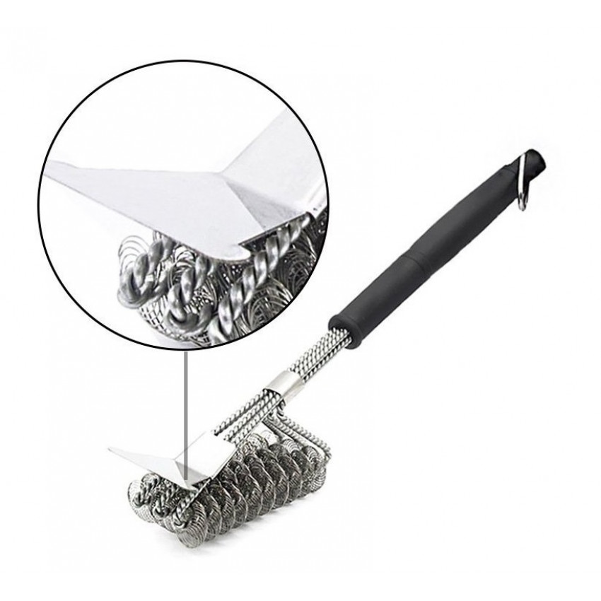 Čistenie, údržba a upratovanie sú činnosti, ktoré sú z celého procesu grilovania asi najmenej zábavné. Dať do poriadku gril po celovečernej „grilovačke“ bez použitia poriadneho vybavenia nie je žiadny med lízať. Už žiadne štetiny, ktoré sa opotrebovávajú alebo odpadávajú. Vďaka hustému, rotačne tkanému dizajnu je kefa veľmi pevná a efektívna. Stabilná rukoväť s dĺžkou 27 cm vás chráni pred teplom z grilu. S jedinečnou, hustou, rotačne tkanou grilovacou kefou môžete vyčistiť gril o 360 stupňov. Kefa nemá žiadne ostré hrany a nemusíte sa báť, že kovové štetiny kefky vypadnú a skončia vo vašom jedle.