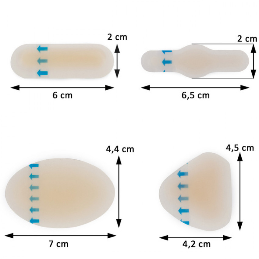 Z mäkkého a pružného materiálu, tieto náplasti urýchľujú hojenie otlakov, pľuzgierov a odrenín, zabezpečujúc účinnú ochranu a zvýšený komfort. Sú vodeodolné a po aplikácii na pokožku zostávajú takmer neviditeľné.