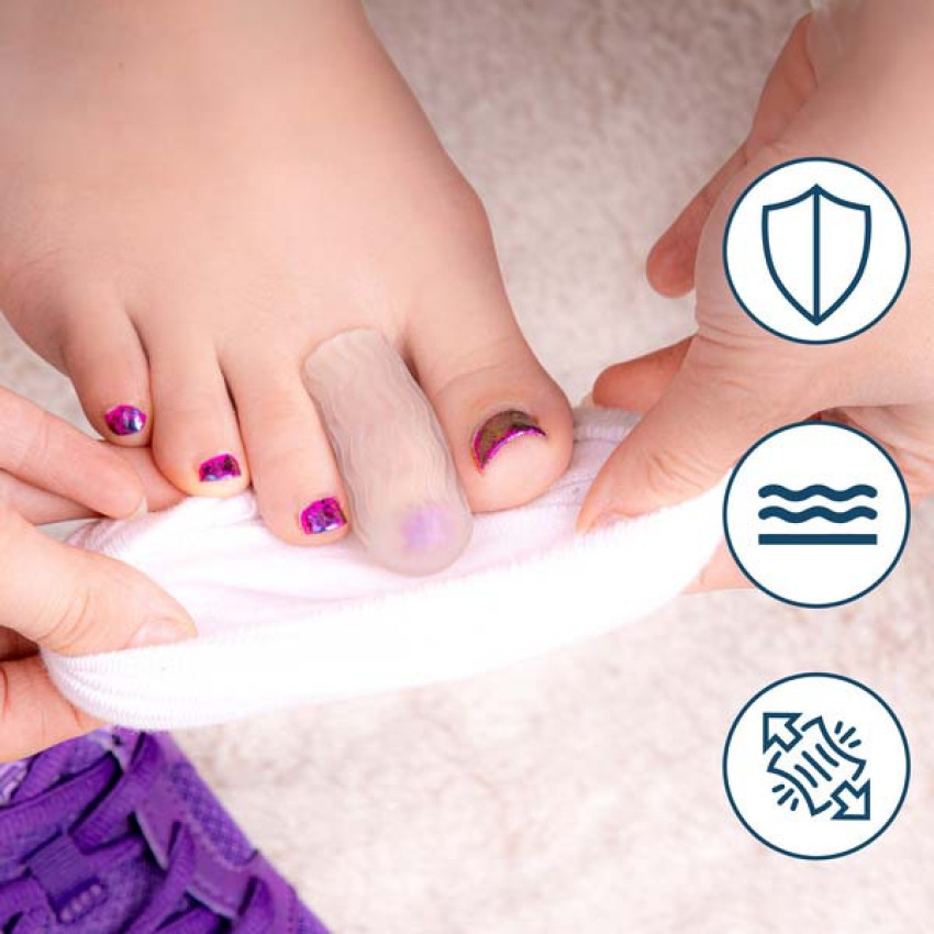 Zmierňuje trenie medzi prstami, tlmí tlak, zabraňuje odreninám a vzniku otlakov. Prispôsobí sa tvaru prsta, chráni pri kladivkových prstoch a nosení úzkej obuvi.