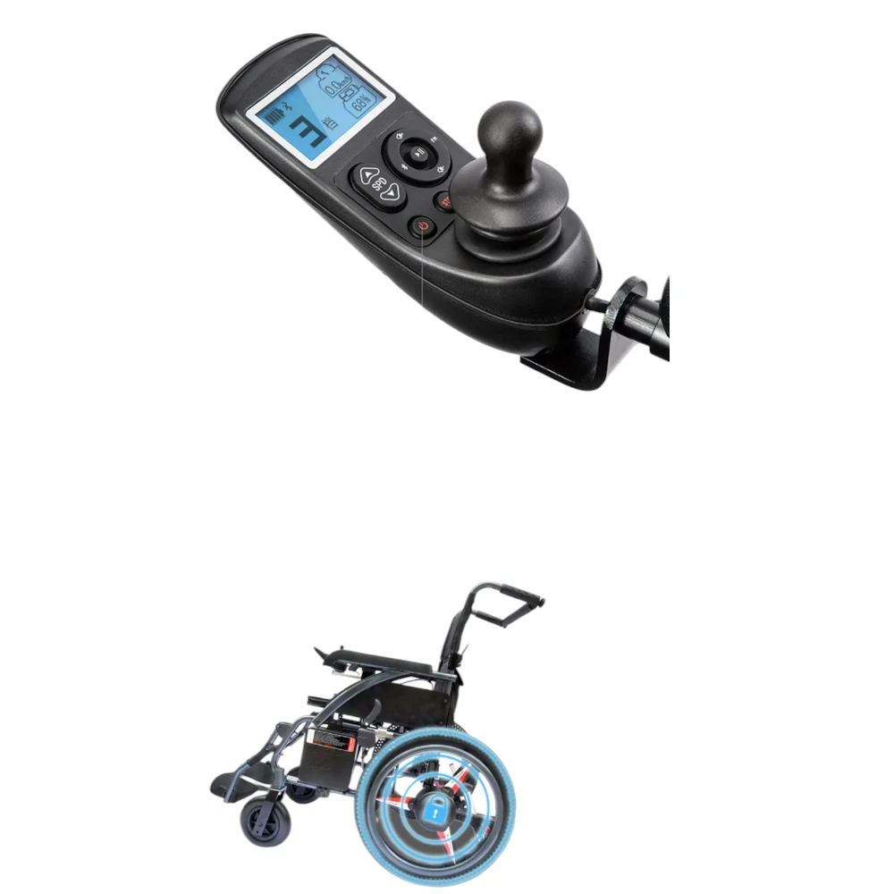 Vozík ovláda multifunkčný otočný joystick s LCD displejom, ktorý umožňuje plynulé riadenie v rozsahu 360°. Jediným tlačidlom možno prepínať medzi manuálnym a automatickým režimom. Regulácia rýchlosti, údaje o jazde v reálnom čase a možnosť pripojenia cez Bluetooth zvyšujú komfort používania. Dva motory s výkonom 2×350 W a kolesá z horčíkovej zliatiny zaisťujú stabilitu a výkon.