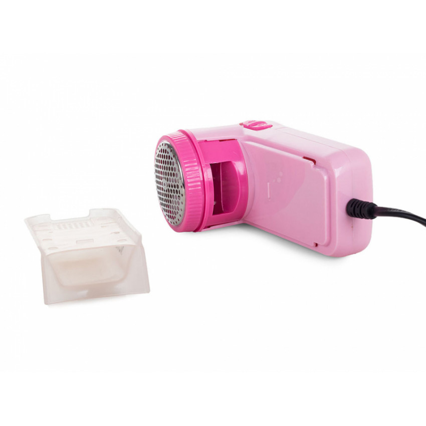 Odstraňovač žmolkov s ergonomickým tvarom a veľkou nádobou na odpad. Má 3 ostré britvy, ochranu textílií a jednoduché ovládanie. Vhodný na látky, pleteniny a koberce. Príkon 3W, ružový dizajn, napájanie 220V.