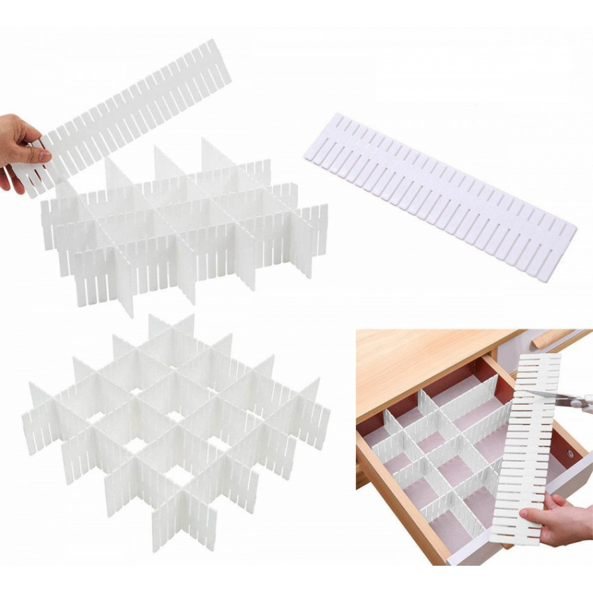 Usporiadajte svoju zbierku kozmetiky alebo spodnej bielizne s týmto praktickým a cenovo dostupným riešením. Sada obsahuje 5 plastových prvkov, ktoré umožňujú vytvorenie mnohých oddelení v zásuvke pre jednoduchý a rýchly prístup k oblečeniu.