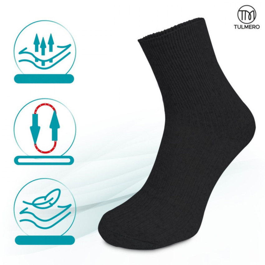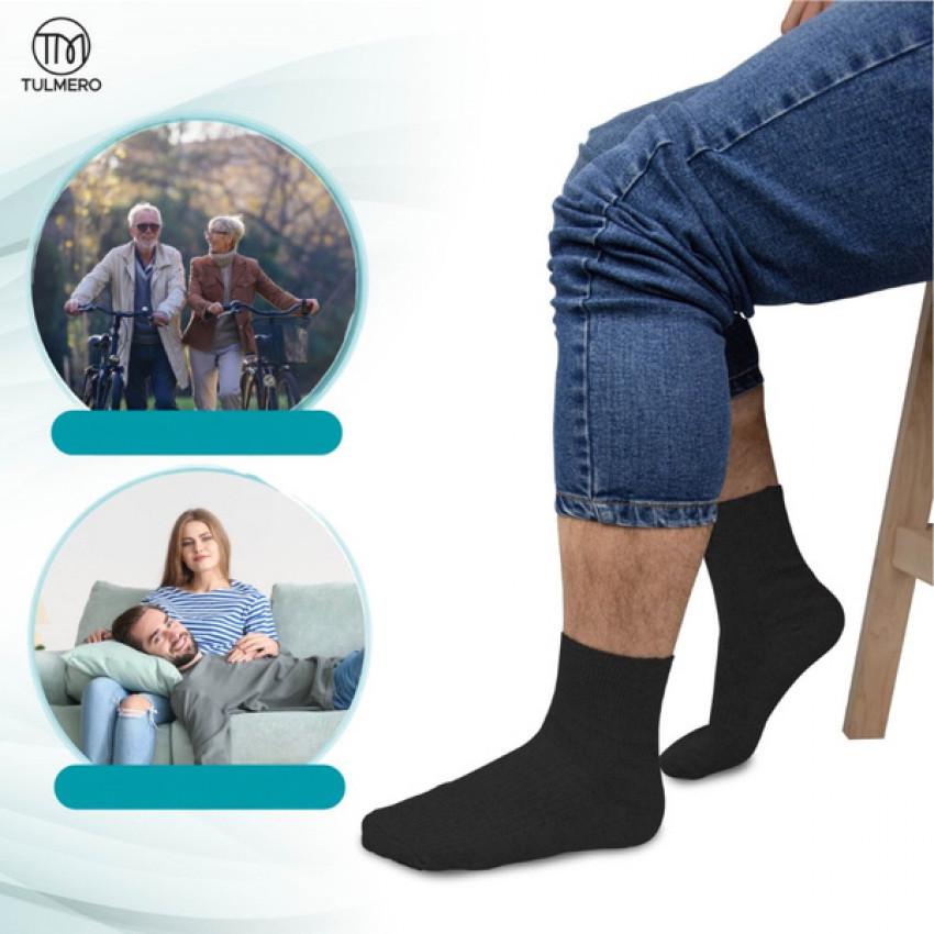 **Bezšvové ponožky Tulmero** sú ideálnym riešením pre mužov, ktorí hľadajú pohodlie, funkčnosť a štýl v jednom produkte. Tieto **pohodlné a mäkké bavlnené ponožky** sú špeciálne navrhnuté na minimalizáciu tlaku na nohy a lýtka, čím umožňujú **voľný prietok krvi** a zabraňujú nežiaducemu zovretiu citlivých oblastí chodidiel.