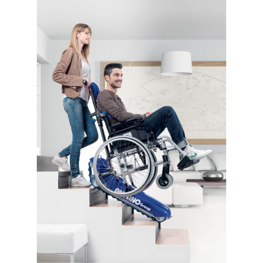 Prekonávanie bariér v interiéri a exteriéri je jednoduché s týmto schodolezom, ktorý je vďaka patentovanému riešeniu otáčania na malých priestoroch až o 360° veľmi manipulovateľný.