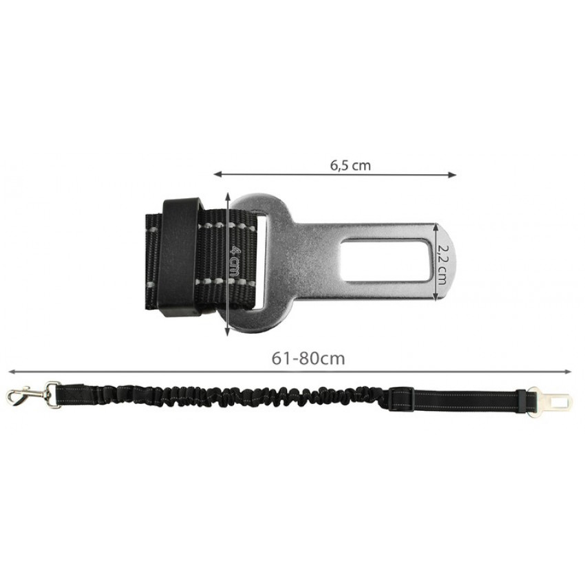 Umožňuje pripevnenie na všetky systémy bezpečnostných pásov v automobiloch, čo znamená, že zariadenie zaručuje široké uplatnenie a záruku zhody bez ohľadu na značku a model vozidla. Prispôsobenie aktuálnym potrebám zabezpečuje systém plynulého nastavenia dĺžky, ktorý dáva psovi určitú voľnosť v prípade väčších áut alebo obmedzuje ich pohyb. Naťahovacia časť vodítka absorbuje náhle nárazy, čím zvyšuje pohodlie zvieraťa a znižuje zranenia pri náhlom brzdení alebo účasti na zrážke na ceste. Obojok sa zapína na karabínku, ktorú sa odporúča pripevniť na postroj psa.