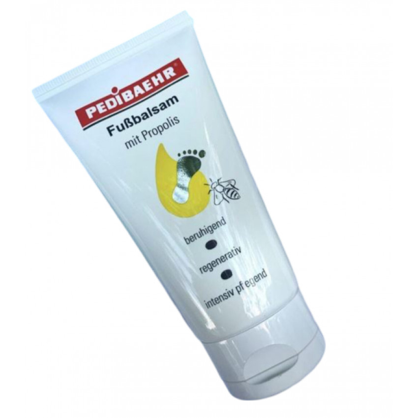 Propolis – zmes éterických olejov, flavonoidov, vitamínov a včelieho vosku – vytvára na pokožke jemný ochranný film, ktorý pokožku upokojuje, obnovuje a zjemňuje. Okrem propolisu obsahuje tento krém mandľový olej a jojobový olej, ktoré pokožke dodávajú potrebnú hydratáciu a vláčnosť. Vďaka tejto unikátnej kombinácii zložiek pomáha Pedibaehr balzam udržať pokožku zdravú, hladkú a bez neželaných trhlín.