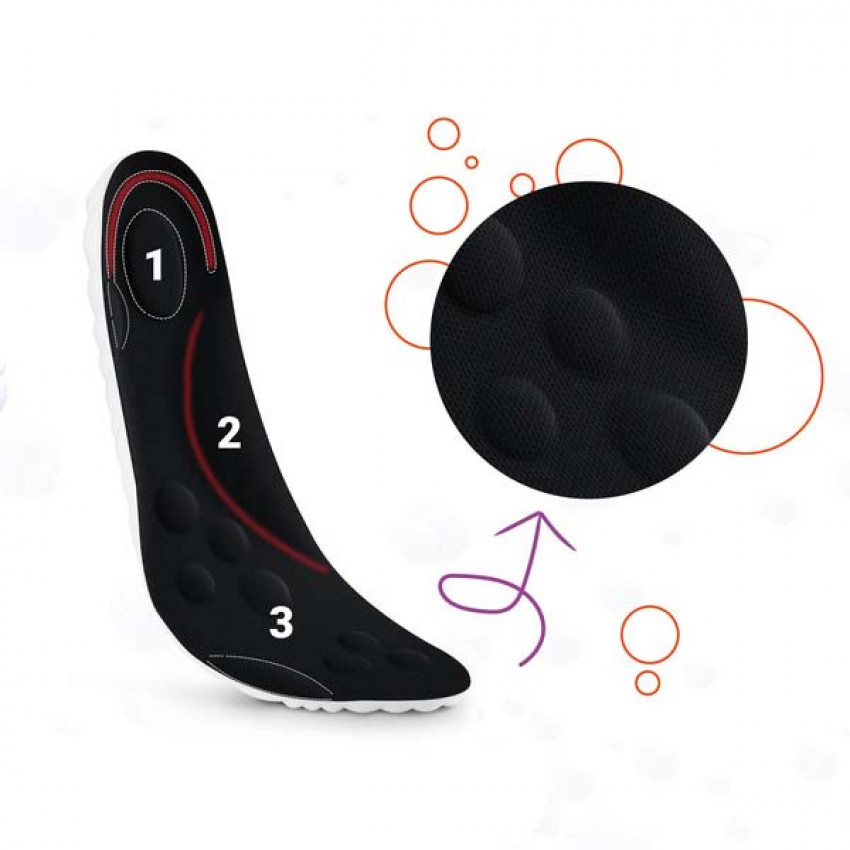 Vďaka inovatívnej 4D pene, tieto vložky zabezpečujú efektívne tlmenie nárazov a rozloženie tlaku po celej ploche chodidla.