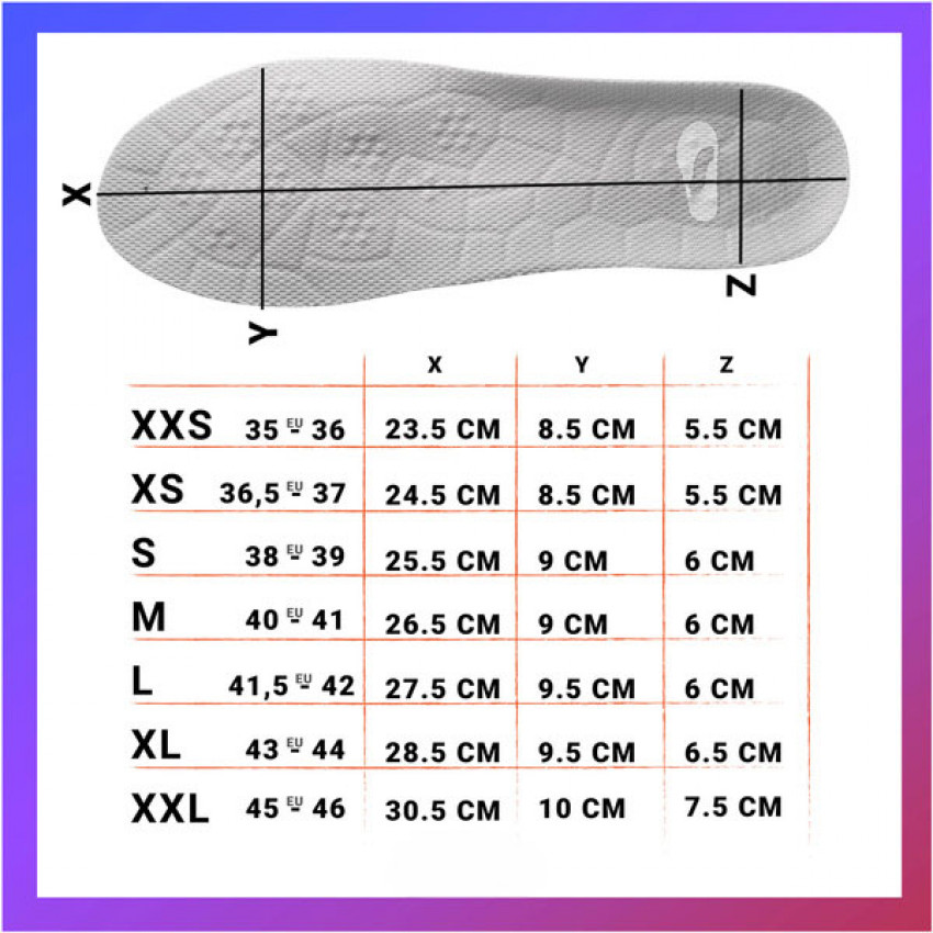 Veľkosť vložiek by mala zodpovedať veľkosti vašej obuvi. V našej tabuľke veľkostí nájdete presné rozmery vložiek, ktoré vám pomôžu pri výbere správnej veľkosti.