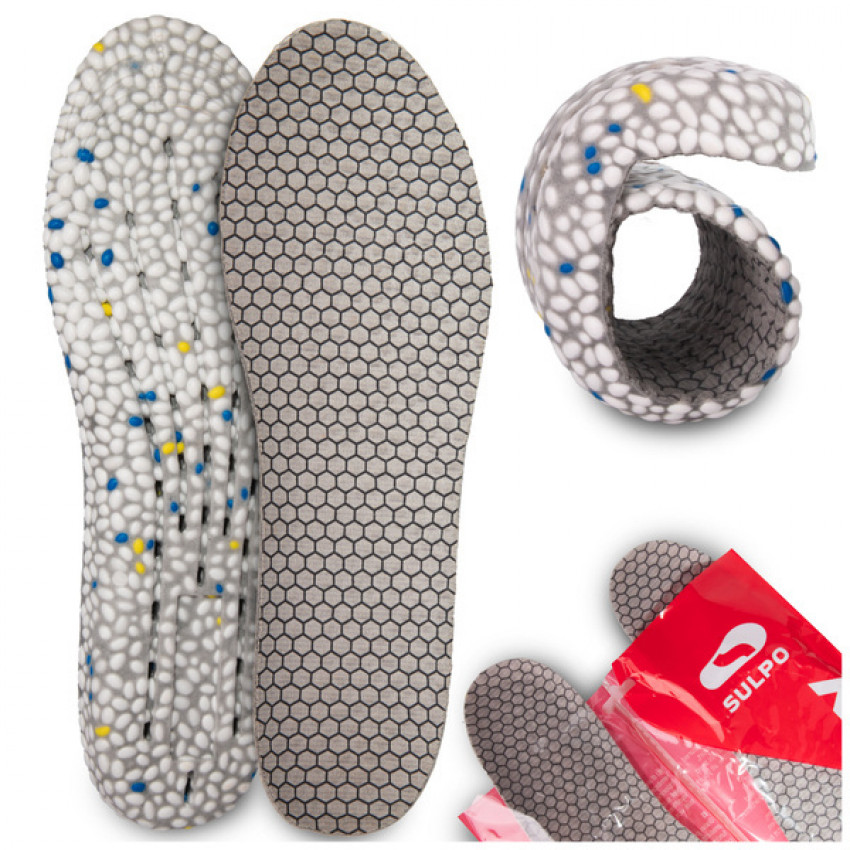 Vložky možno jednoducho pristrihnúť podľa tvaru a veľkosti topánok. Stačí použiť nožnice, porovnať ich s vašimi súčasnými vložkami a prispôsobiť ich tvar. Tento proces zaručuje dokonalé sadnutie do akéhokoľvek modelu obuvi bez kompromisov v pohodlí.
