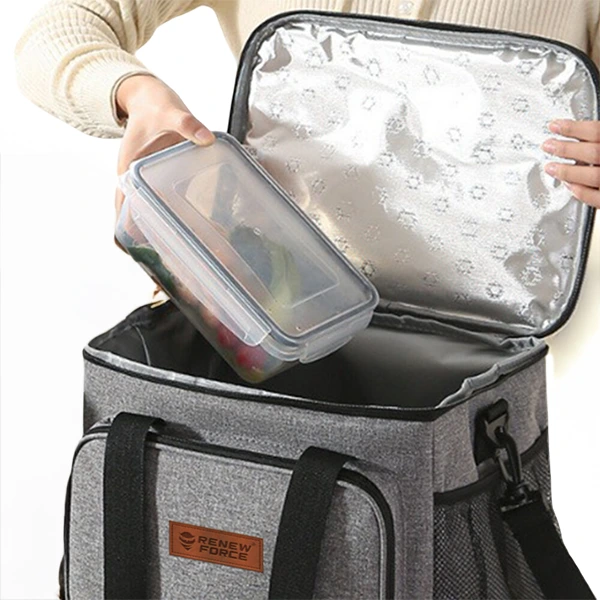 Izolácia udržiava teplotu jedla, praktické vrecká uľahčujú organizáciu a nastaviteľný popruh zaručuje pohodlie pri nosení. Ideálna voľba na cestovanie, do práce aj na výlety. Rozmery 37 × 32 × 25 cm.