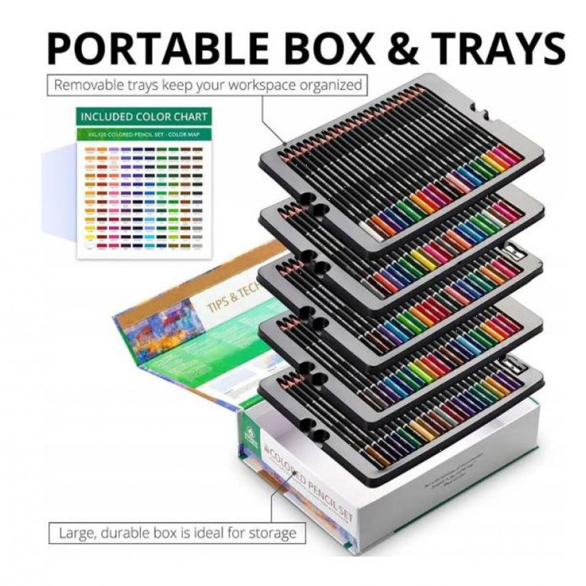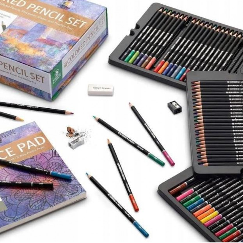 Profesionálna sada na kreslenie pre nováčikov alebo skúsených profesionálov. Začnite kresliť hneď, ako otvoríte balík. Sada so 10 stranovým skicárom 100g papierom. Sada obsahuje 120 kusov profesionálnych farebných ceruziek presne a vopred nabrúsených s protišmykovou úpravou.