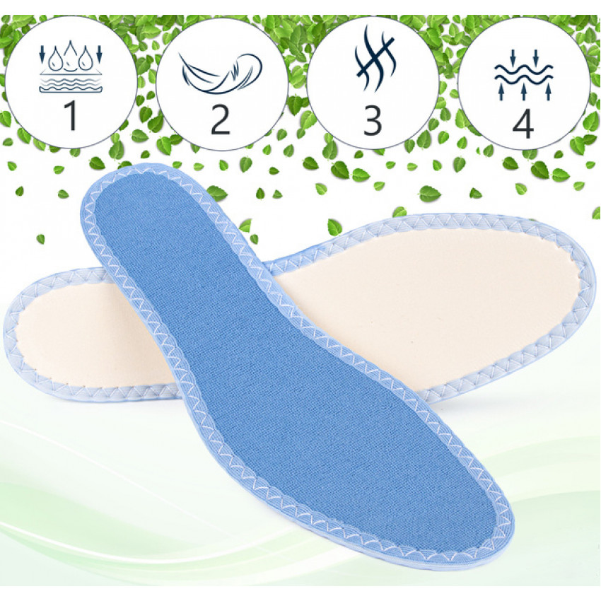 Bavlnený lem zabraňuje rozstrapkaniu vložky na bokoch a predlžuje jej životnosť. Aj po niekoľkých praniach môže stále dobre slúžiť. Tieto vložky sú umývateľné a opakovane použiteľné, čo z nich robí udržateľnú voľbu. Ľahko sa čistia, zostávajú fresh a hygienické po dlhú dobu. Tieto vložky zabezpečujú príjemnú teplotu chodidiel zlepšením cirkulácie vzduchu. Pomáhajú predchádzať nepríjemnému zápachu nôh a nepohodliu spôsobenému množením baktérií. Dezinfekčný prostriedok likviduje baktérie a neutralizuje pachy, čím zaisťuje príjemnú vôňu nôh pre celodennú sviežosť a pohodlie.