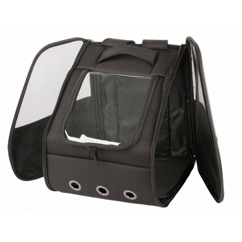 Disponuje dvojitým otváraním z dvoch strán, s dodatočnou priehľadnou chlopňou na zadnej strane, čo umožňuje vášmu miláčikovi sledovať okolie. Batoh je dobre vetraný s sieťovanými bočnými panelmi a trojicou otvorov na prednej strane pre optimálnu cirkuláciu vzduchu. Vnútri batoha je vyberateľná vložka, ktorá uľahčuje udržiavanie čistoty batoha.