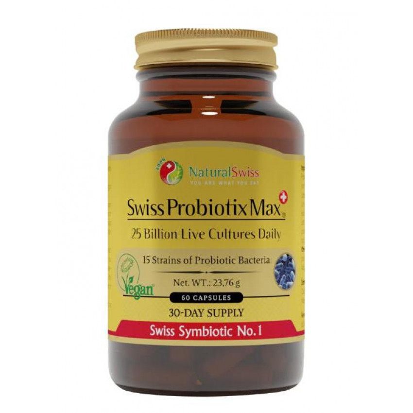 V našich črevách žijú stovky druhov baktérií, ktoré možno rozdeliť do dvoch skupín, na prospešné (probiotické) a škodlivé (prebiotické) baktérie. Probiotiká sú prospešné mikroorganizmy črevnej mikroflóry, ktoré sú zodpovedné za ochranu pred patogénmi, za zdravie imunitného systému a ochranu črevného systému. Pokiaľ sa naruší rovnováha črevnej flóry, môže dôjsť k premnoženiu škodlivých baktérií. Swiss Probiotix Max obsahuje 15 druhov lyofilizovaných, vysoko životaschopných živých kultúr a 12,5 miliardy živej flóry v každej kapsule, ktoré pomáhajú udržiavať a obnovovať rovnováhu črevnej flóry. Produkt môžu konzumovať aj osoby dodržiavajúce vegetariánsku stravu. Neobsahuje prídavné látky, pšenicu, kofeín, sóju, kukuricu, cukor, vajcia, mlieko, konzervačné látky a ani farbivá.