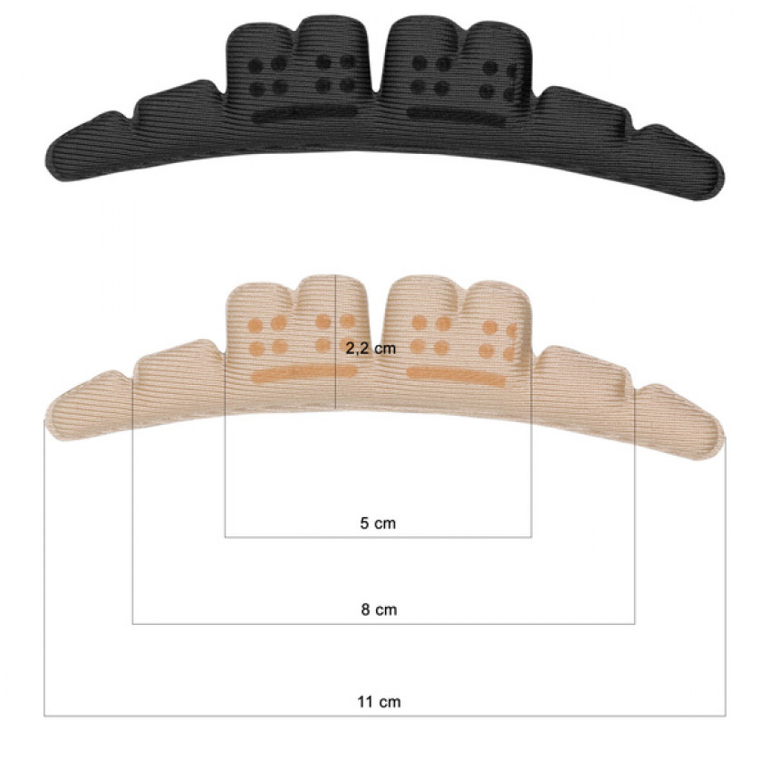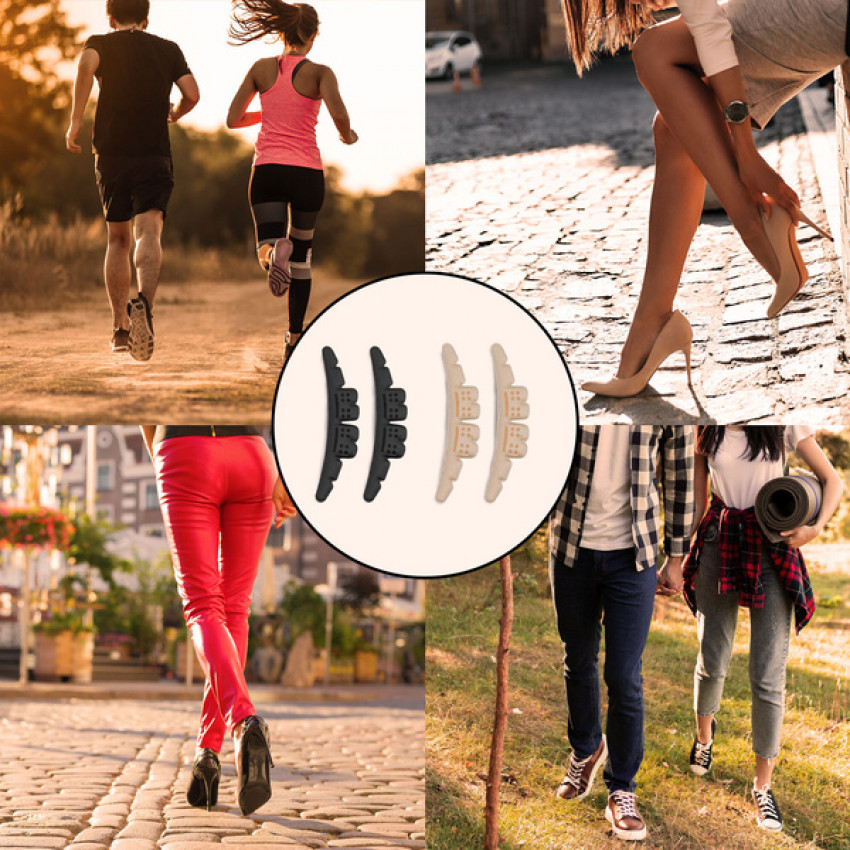 Tieto náplaste sú vyrobené z vysoko kvalitného mäkkého silikónu, ktorý zaručuje jemnú, no pevnú oporu pre chodidlo. Tieto samolepiace silikónové pásiky pôsobia ako "mäkká bariéra", ktorá znižuje pohyb nohy smerom k prednej časti topánky a zároveň tlmí nárazy pri chôdzi. Zabránia tak bolesti, odieraniam a vzniku mozoľov či kurích ók.