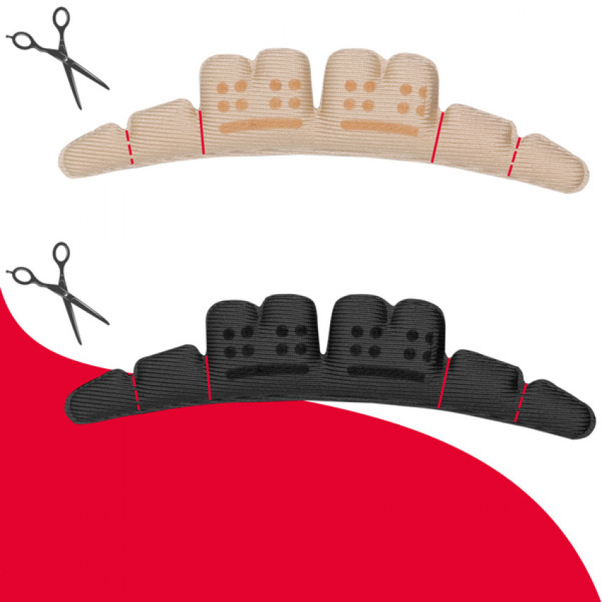 Ak máte otvorené topánky, prilepte náplasť tak, aby presne pokryla oblasť pod prstami bez prečnievania. Pre uzavreté topánky je možné náplasť pristrihnúť a prilepiť podľa potreby na vnútornú stranu pre zabezpečenie, že noha bude v topánke stabilne držať svoju pozíciu.