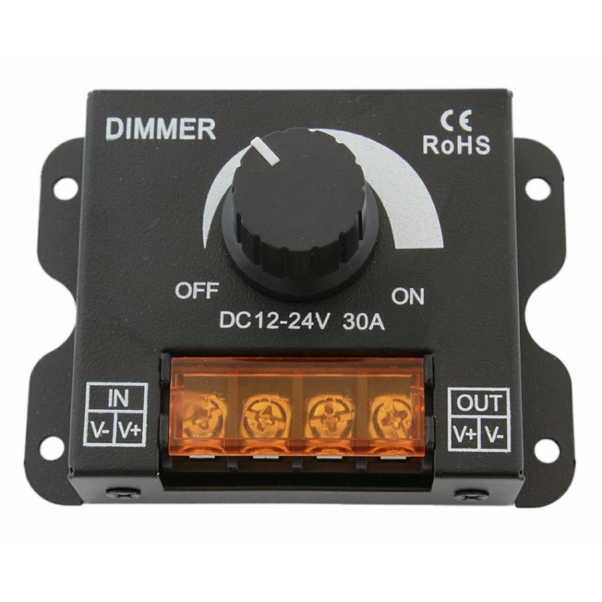 Ručný rotačný stmievač 360W, určený pre plynulé stmievanie LED osvetlenia (jednofarebné) s napätím 12V / 24V DC. Zariadenie vám umožní výrazne znížiť účty za elektrinu. Stmievač vám umožňuje nezávisle a plynulo nastavovať intenzitu svetla v závislosti od vašich potrieb.