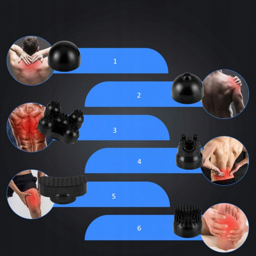 Ručný masér s vymeniteľnými hlavicami je v súčasnosti jedným z najvýkonnejších masážnych prístrojov na trhu. Produkt sa používa predovšetkým na regeneráciu svalov, odbúravanie stresu a napätia a relaxáciu. Pomôže utíšiť bolestivé následky silového tréningu, pomôže rozmasírovať stuhnuté a napäté svaly. Skvele poslúži aj ako relaxačné zariadenie. Masér je optimálnym doplnkom tréningového a relaxačného cyklu pre ľudí, ktorí pravidelne cvičia. Ľudia s menšou fyzickou aktivitou ho môžu využiť na efektívne stimulovanie práce svalov.