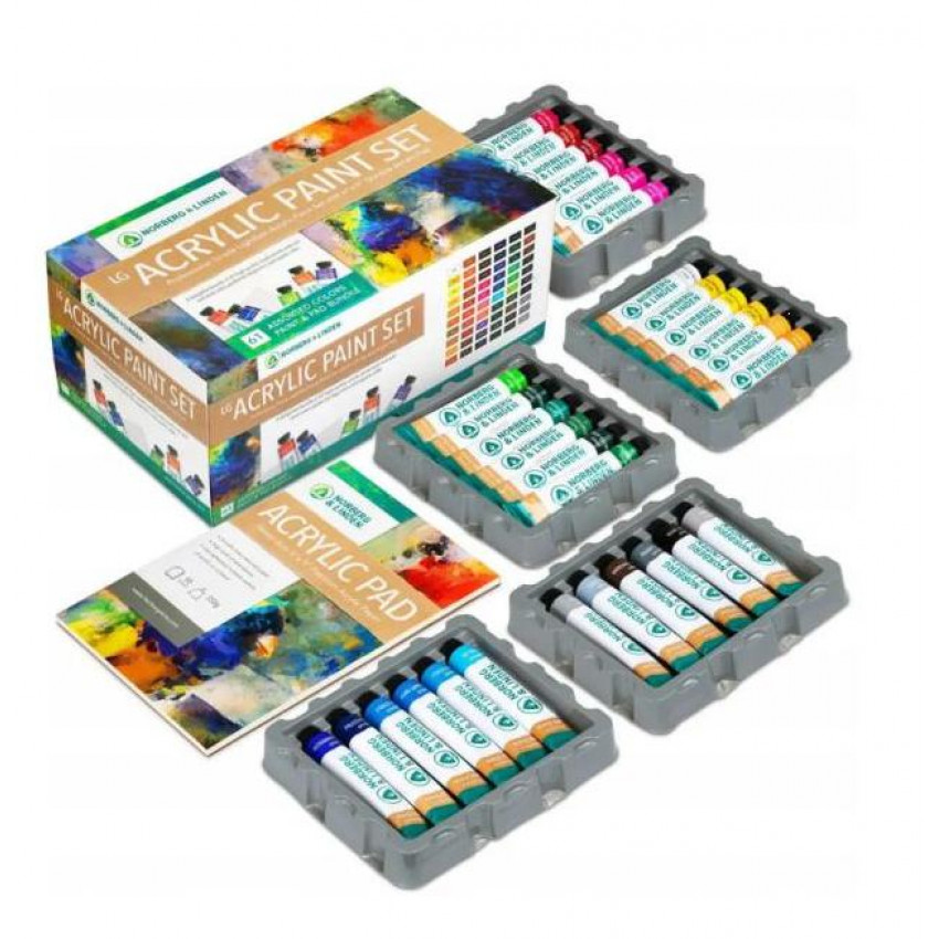 Prémiová umelecká sada obsahuje všetko, čo potrebujete pre maľovanie akrylovými farbami. Súčasťou sú 60 tubami v objeme 12 ml vysokokvalitnej akrylovej farby a 10 stranový blok profesionálneho 350g papiera.