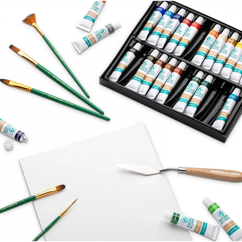 Naša sada akrylových farieb Norberg & Linden obsahuje rôznorodú sadu 24 intenzívnych odtieňov v 12 ml tubách. Skúste skombinovať dva odtiene pre ešte širšiu škálu pigmentov!