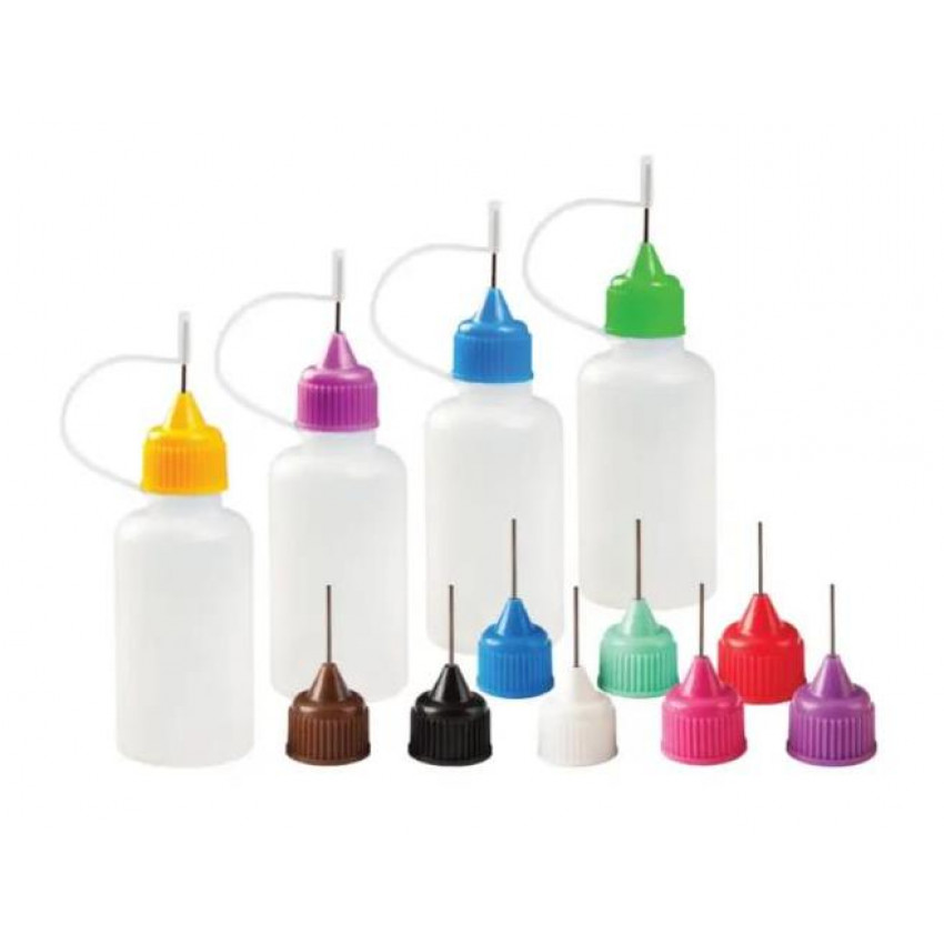 Sada plastových fliaš s presnými aplikátormi pre prácu na detailoch a jemných líniách v rôznych materiáloch. Ideálne na tenké lepidlo, atrament, farby a olej. Fľaštička s presným aplikátorom s hrotmi a jemnými ihlami. Tieto 1 oz plastové fľaše sú skvelým presným nástrojom. Perfektná pomôcka pre lepenie quillingových materiálov. Na zlepenie papiera je možné použiť fľaštičku s ihlovým aplikátorom.