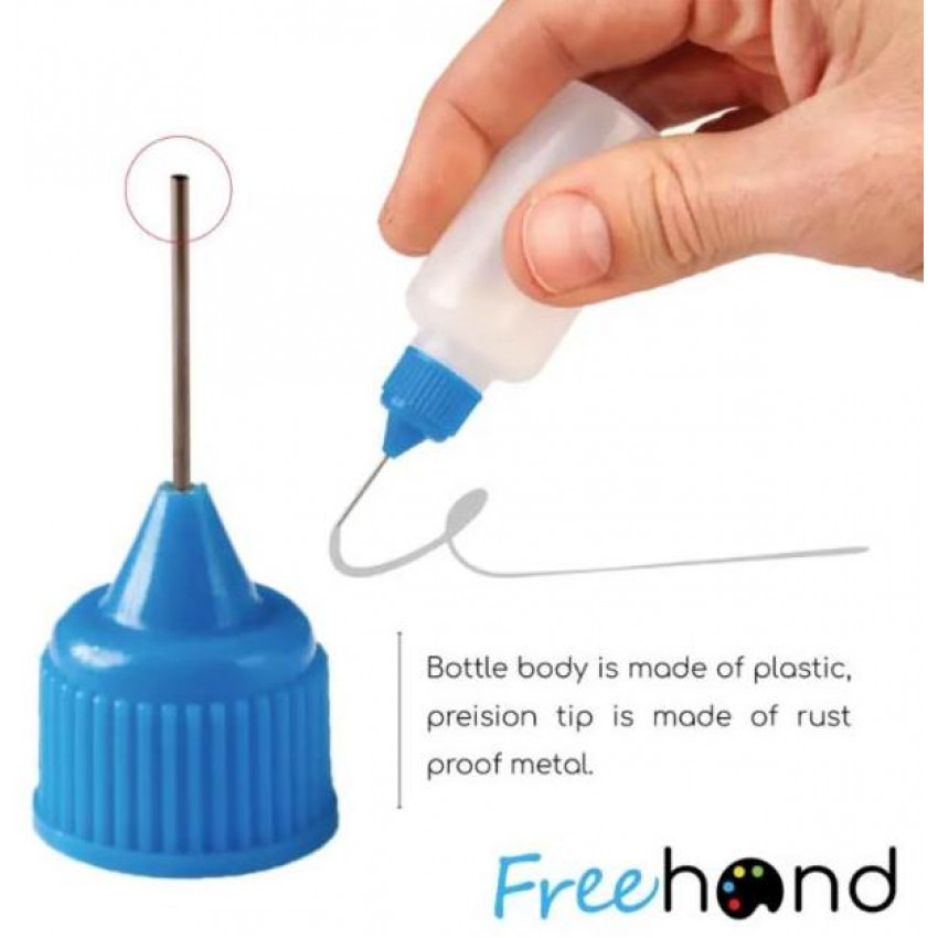 Nezabudnite používať menej husté tekutiny a lepidlá, pretože hrot má malý priemer 1 mm. Ak je kvapalina príliš hustá, hrot sa môže upchať. Prázdne fľaše sú skvelým doplnkom vašich umeleckých potrieb. Fľaše so špičkou možno použiť s lepidlom, farbou, atramentom a inými tekutinami. Fľaštička s tenkým aplikátorom funguje ako ihlový olejček na zámky, dvere, hodiny, šijacie stroje, rybárske navijaky, bicykle atď.