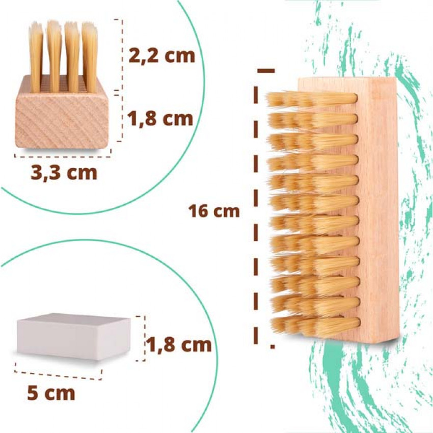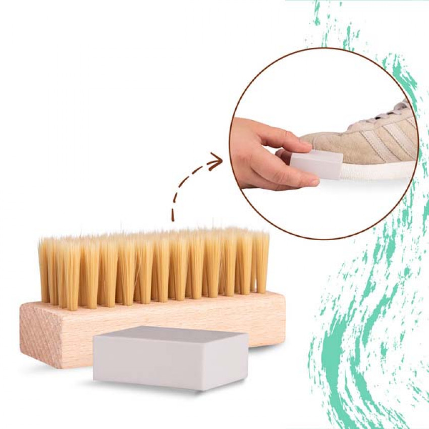 Ideálnym riešením na starostlivosť o semišové a nubukové topánky je táto súprava, ktorá obsahuje jemnú čistiacu gumu a kefku s mäkkými štetinami. Efektívne odstraňujú prach a nečistoty, zároveň šetrne zachovávajú kvalitu obuvi.