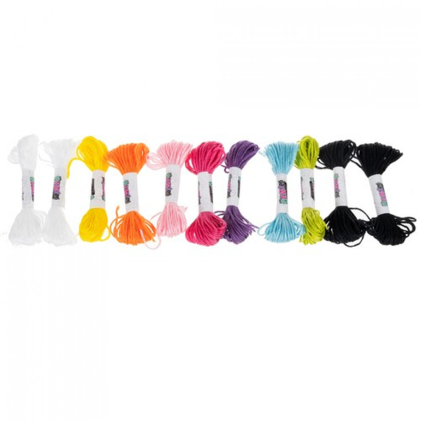 Sada obsahuje nite v 9 farbách, vrátane bielej, čiernej, ružovej, fialovej, modrej, žltej, oranžovej, pastelovej ružovej a zelenej. Deti môžu kombinovať farby podľa vlastného vkusu a vytvárať tak náramky plné farieb a originality.