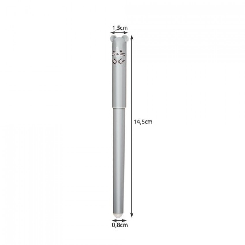 Každé pero v sade predstavuje jedinečné zvieratko: prasiatko, pandu, myš a plyšového medvedíka. Rôzne farebné prevedenia (šedá, biela, ružová, tmavomodrá) dodávajú písaniu osobitý štýl a oživia každodenné poznámky. Perá sú vybavené stierateľným atramentom, ktorý sa dá ľahko odstrániť pomocou gumy na ich konci. Vďaka tomu môžu deti bez stresu opravovať svoje chybičky a súčasne sa učiť písať správne.