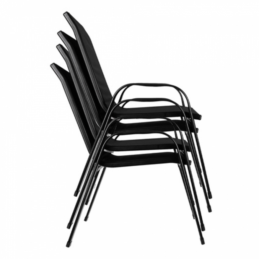 Odolné, pohodlné a štýlové riešenie pre váš exteriér! Táto sada 4 záhradných stoličiek je navrhnutá tak, aby vám poskytla maximálne pohodlie a dlhú životnosť. Kombinácia oceľového rámu s práškovým nástrekom a odolnej textilnej výplne zaručuje stabilitu a odolnosť voči poveternostným vplyvom. Stoličky sú ideálne na použitie v záhrade, na terase, balkóne či chate.