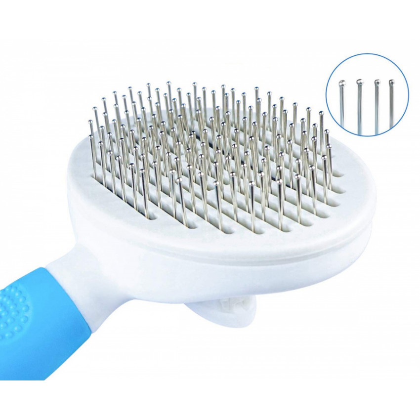 Samočistiaca kefa vyčeše zo srsti aj drobné nečistoty a pomocou praktického tlačidla z neho odstránite vyčesané chlpy počas pár sekúnd. Kefa má ergonomickú a protišmykovú rukoväť, ktorá výrazne zvyšuje komfort pri kefovaní. Ihličky sú v rovných líniách a majú okrúhle konce, aby maznáčika pri kefovaní nezranili a navyše ho uvoľňovali jemnou masážou kože. Pozitívne pôsobí aj na lesk srsti, a to vďaka rozloženiu prirodzeného tuku. Vhodný pre akýkoľvek typ srsti, akejkoľvek dĺžky, bez ohľadu na plemeno, vek a veľkosť maznáčika. Univerzálna kefa sa odporúča pre psy, mačky, králiky a ďalšie zvieratá.