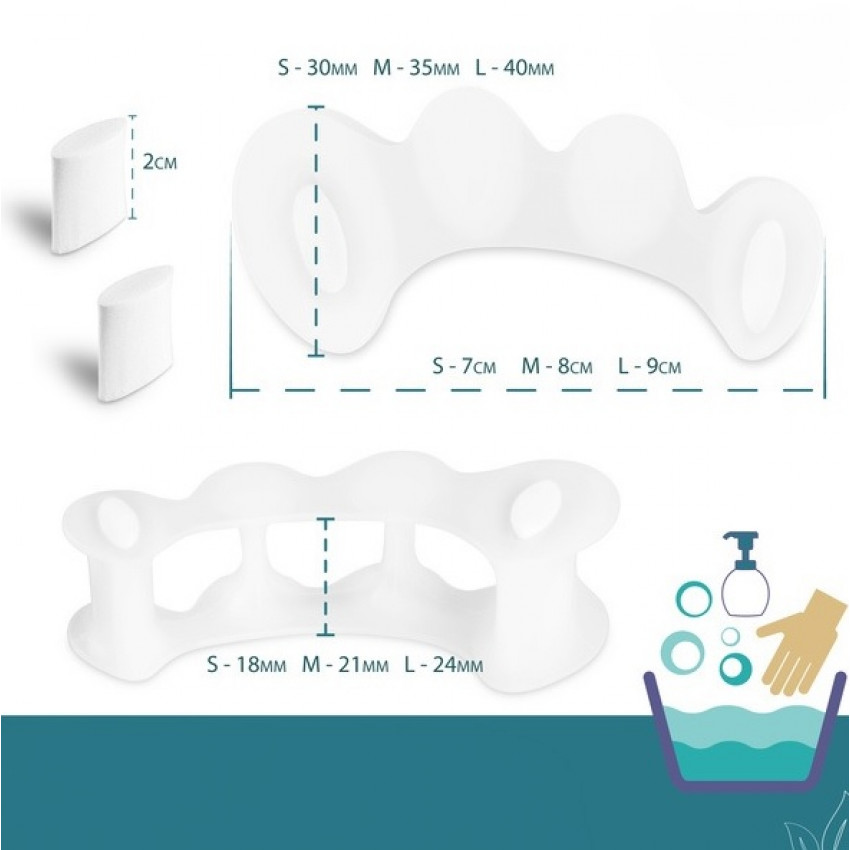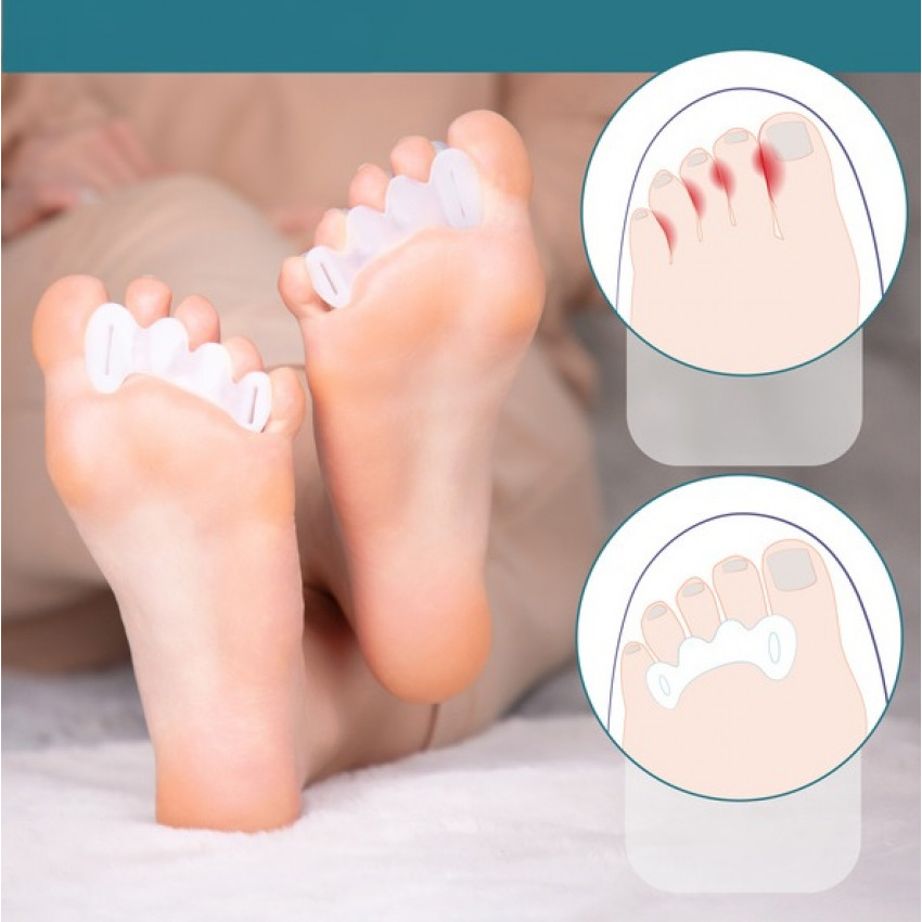 Oddeľovače sú šetrným a nenápadným riešením pre každého, kto chce udržať prsty na nohách v správnej polohe bez zbytočného nepohodlia. Produkt je určený tak, aby jemne natiahol prsty a udržiaval ich v optimálnej polohe bez rizika odrenín alebo tlaku na chodidlo.
